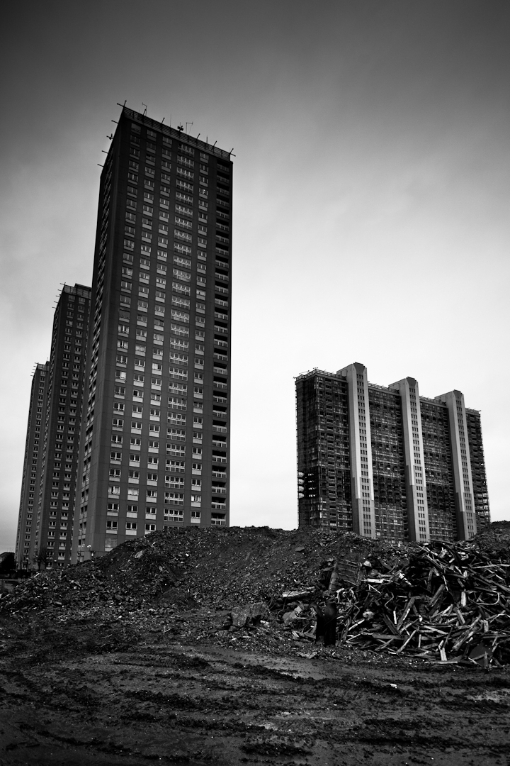 Once a vision of the future in the 1960’s, now these towers are condemned to the past. They once were the highest residential flats in Europe and now are presently being stripped and demolished.