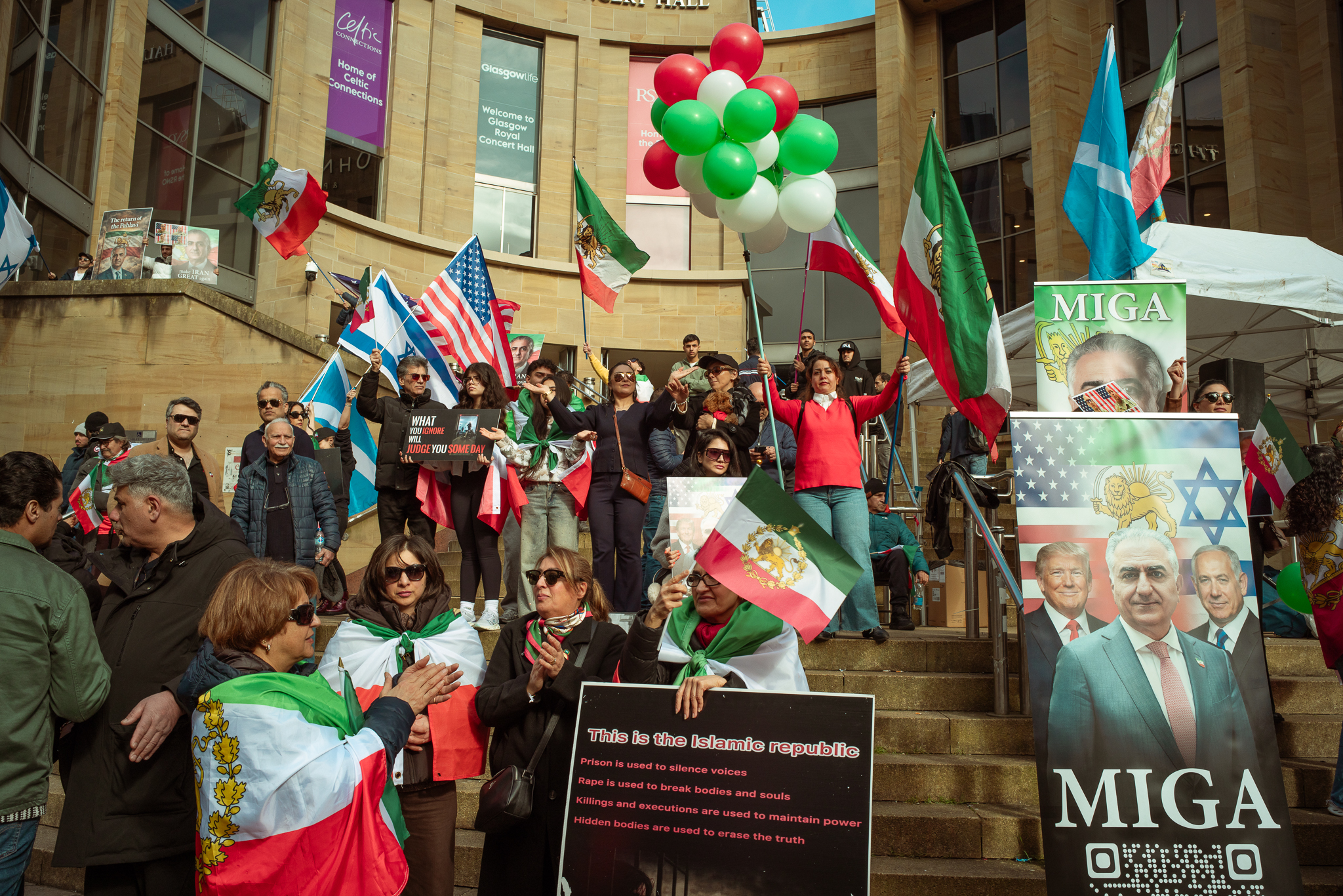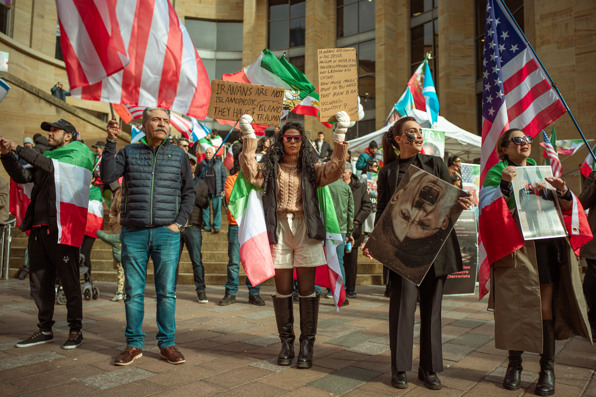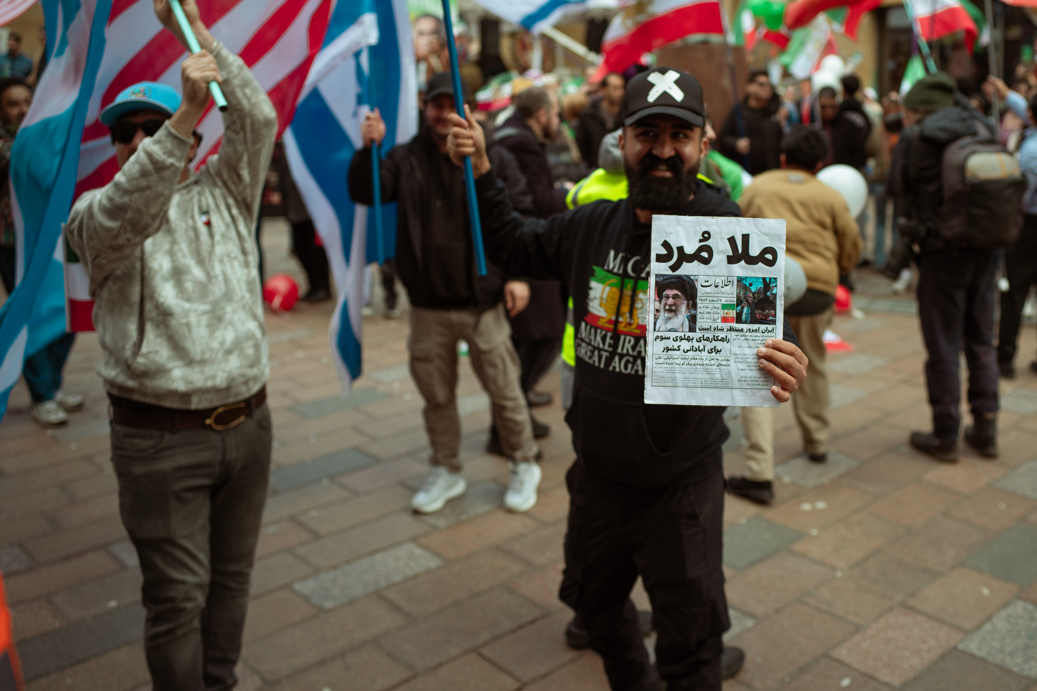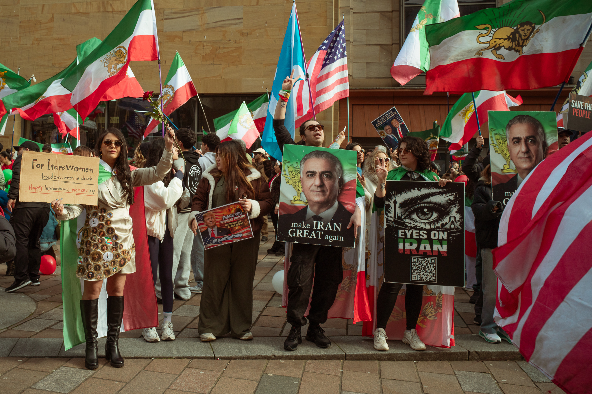 At the beginning of the March, the Iranian people protesting against their current government on the street.